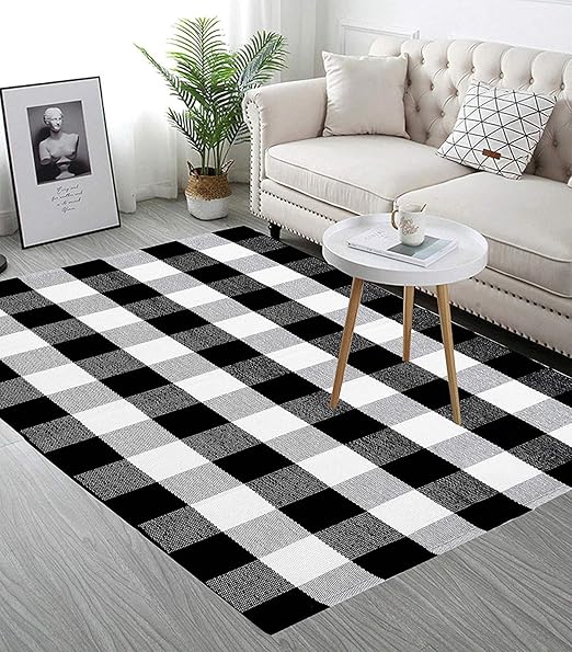 Get it as soon as tue sep 22. Save 5 more with subscribe save. Earthall buffalo plaid rug black and white 2 x4 3 cotton hand woven check door mat hallway runner washable outdoor rug kitchen front porch living room laundry room bedroom 23 6 x51 2 4 7 out of 5 stars 1 018. Made in turkey this one is constructed from polypropylene a synthetic material designed to stand up to muddy shoes in the entryway and the occasional spill under the kitchen.